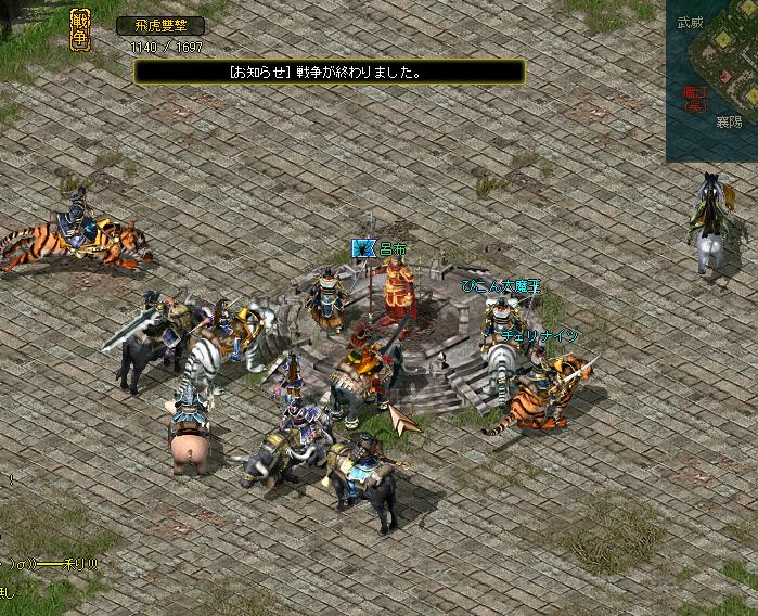 今回は魏はかなりがんばりましたよ。 互角でしたね。 人数では圧倒的に不利な中よくやりました。 戦争としては最高に面白い状況ですね、今。どっちに行っても敵がわんさかいて殺しまくれて。 今の蜀、呉に嫌気が差してる人!魏は人材募集中ですよ^^一緒に楽しみませんか?