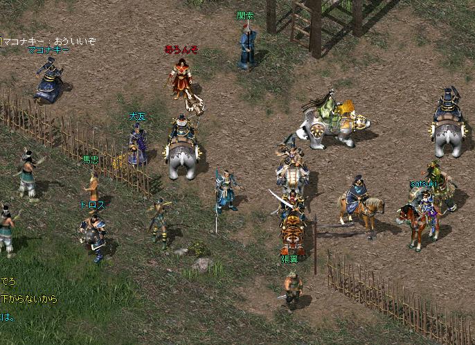 2008年5月、オンラインゲーム北斗の拳をやろうとPCにダウンロードするも、緊急メンテ中だったので、暇つぶしに他のやろうかなと思って適当に探していたところ、三国志豪傑伝を発見する。 わしは呉が好きなので、呉で開始、好きな周喩をチョイスするも、好きなキャラであるがゆえに絵が許せなかったので、消去w絵で選んで一番まともな魏になる。 ここで女好きの性格を発揮し、甄氏を選び、腕力全振り。狼を狩っているときに氷龍氏に武器と防具を援助してもらう。 が、MrGO軍団に勧誘され、そっちに入る。同期にとらぼるた氏。 Lv30ぐらいで腕力振りが失敗だったことに気づく。 ここで曹操作成、腕力と体力と智謀に振るw 司馬懿作成、智謀に振るw どっちにしようか悩みつつも結局曹操をチョイス。司馬懿の夢は後に犬瓦に押し付けることになる。氷龍軍にいた村吉先生の援助のおかげで、曹操でありながらもクエを手伝ってもらったりして、楽してました。 Lv40ぐらいで軍団設立。 45ぐらいでマコナキーをスカウト。のちの変態先生である。 鄧艾作成。範囲狩りにあこがれて作ったもののLv39で放置。 しばらく細々とやっていくが、ヴリ坊(スカウト)加入により軍団員が急に増える。 チェリナイツ軍、ぴこん大魔王軍と同盟を結びちょっとした勢力になってくる。 同盟に雲長兄軍が加わり、城を狙える勢力になる。 のちにのんたまん軍が加わり今の同盟になる。 |