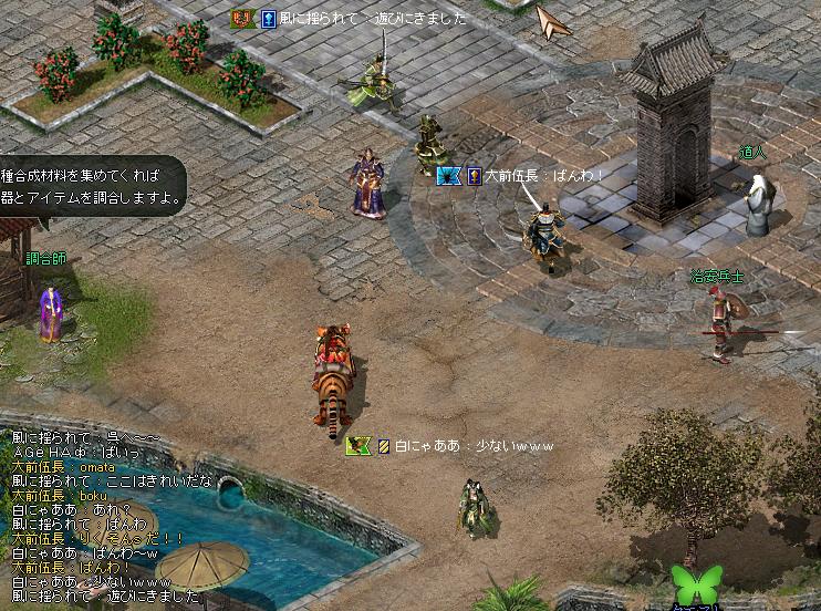 10%上げて、ふと思い立ったのです。 「そうだ!虎作ろう!」 というわけで、虎1はあふれんばかりの量がストックされているので、木馬具を狩りに晋陽に。 恩師村吉こと花先に、敵が見えたら即晋陽図!と教え込まれていたので、おそらく張燕を探しにきたであろう陸遜をみた瞬間逃げたw へたれすぎるwwwww まああれですよ、万が一ってこともあるのでね^^ 安全第一 晋陽ではギャルに囲まれてウハウハでした。痛いけど。 ギャルと戯れるわし↓ 見えそうで見えないのがいいね^^ってチャットしながら見えそうで見えないギャルと(´Д`;)ハァハァ 血が出てるのは気のせいです。
